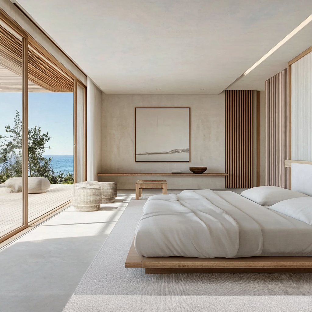 A Retreat Within a Retreat The master suite embodies a sanctuary-like feel. Plush textiles, handcrafted details, and a palette inspired by the coastal surroundings set the tone. Subtle variations in tone and texture add richness. Layered lighting enhances the space’s versatility, offering soft and ambient illumination for relaxation and crisp functional lighting when needed.