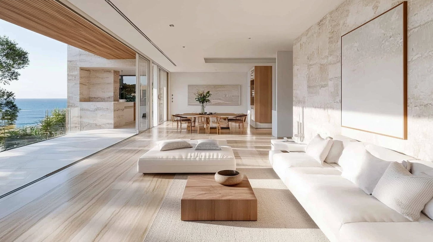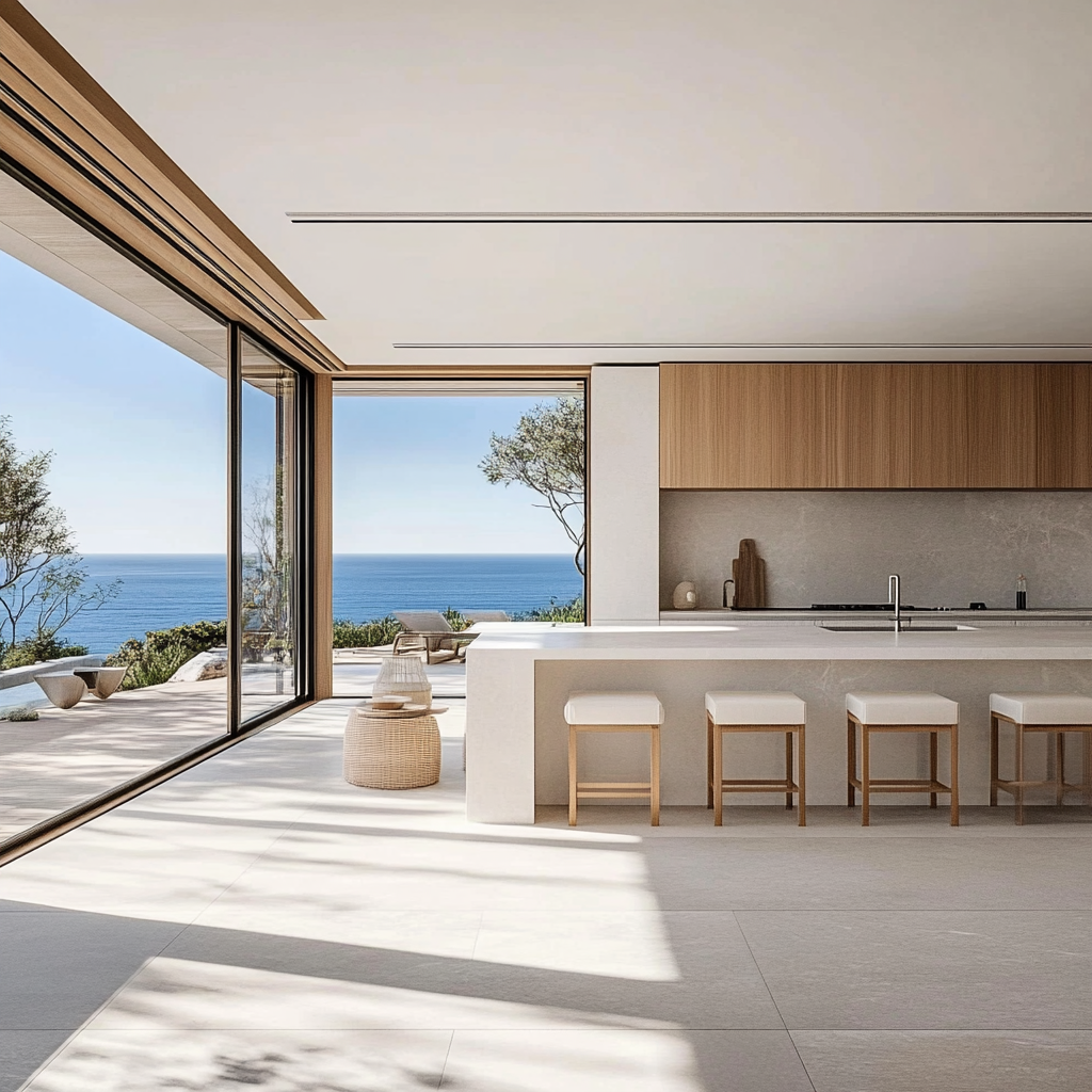 Seamless Transitions The interior layout encourages fluid movement between spaces. Open-plan living areas are designed for both social connection and quiet retreat. Bespoke joinery, integrated seating, and sculptural lighting add depth. Furnishings in natural fibers and neutral tones create a cohesive and inviting atmosphere.
